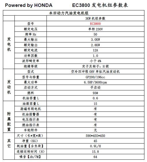 本田汽油發電機 EC3800 3KW單相+手啟動