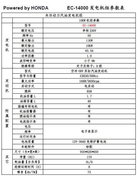 本田汽油發(fā)電機(jī) EC14000 10KW單相+電啟動(dòng)