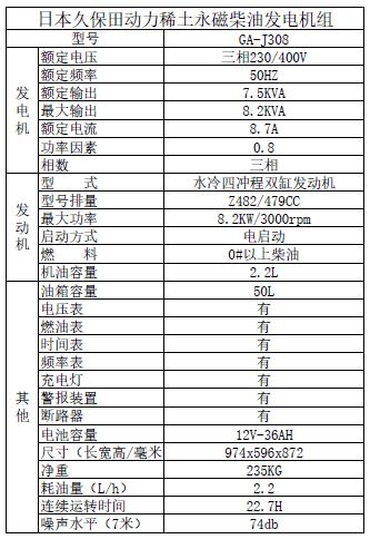 久保田柴油發電機 6KW三相 J308