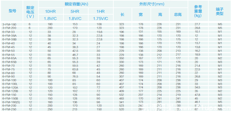 FM固定型密封電池系列(33AH-250AH)