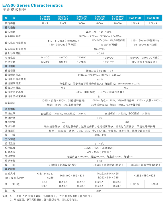第二代EA900系列1kVA-20kVA UPS是易事特公司集最新研發成果和應用經驗,設計、制造的新一代通用型UPS電源,采用先進的DSP數字化控制技術,有效提升了產品性能和系統可靠性,并實現更高功率密度的集成和小型化。同時為了全方位滿足用戶的個性化需求,針對國內外中小企事業單位以及小型供電環境需求而專門推出的高端小功率在線式UPS電源產品,可為用戶的部門級服務器、小型局域網、工作站、工控機、小型醫療設備,及其它小型精密電子儀器提供高可靠電源保護。